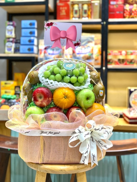 Tín đồ sành ăn của Nho Sữa với Kiwi thì chọn giỏ trái cây này nhé! Được trang trí tông hồn nhạt, màu sắc rực rỡ, đặc biệt thích hợp chị người nhận là nữ.