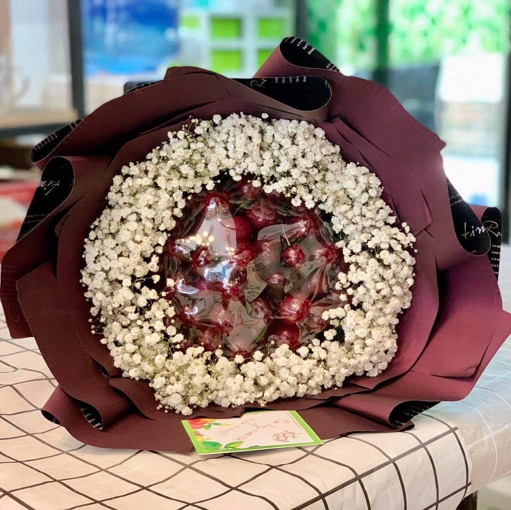Bó hoa cherry vừa được ngắm vừa được thưởng thức thì còn gì độc đáo ấn tượng bằng.